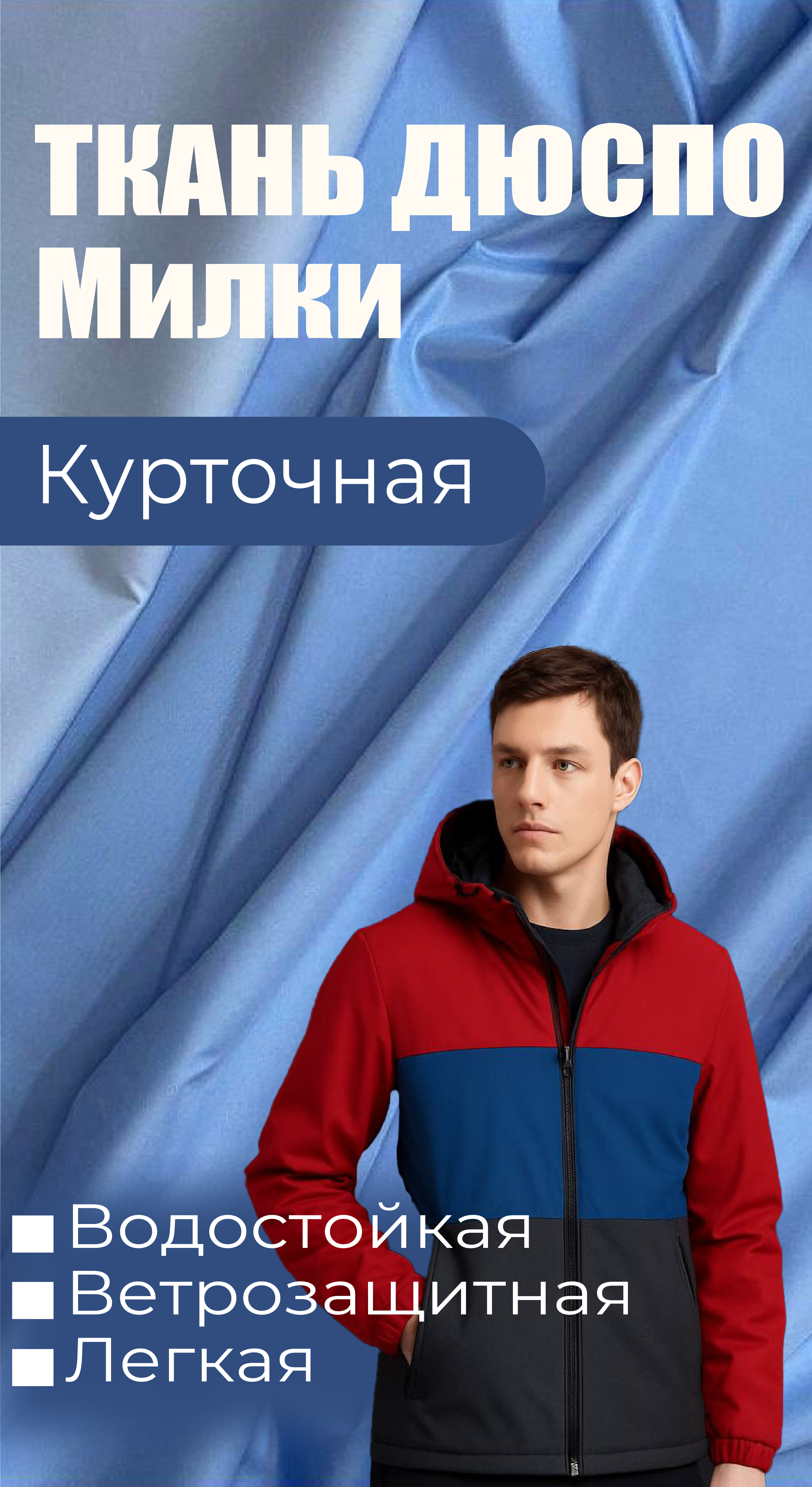 Ткань курточная Дюспо WR Милки 240Т 80+/-5гр.м2 рул 100м...